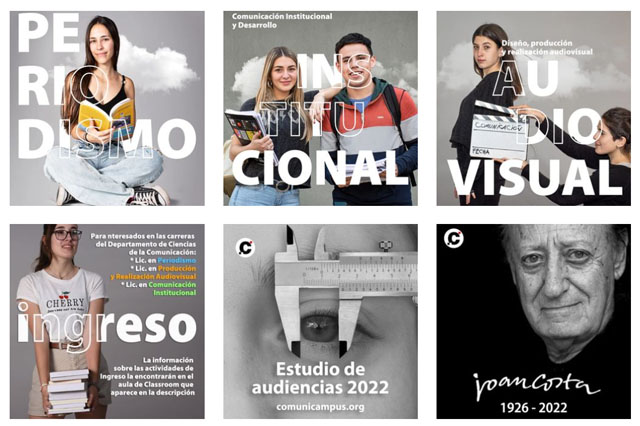 Sitio web de la carrera de Comunicación. Se puede acceder a algunas asignaturas, redes sociales y al Centro de Investigaciones.